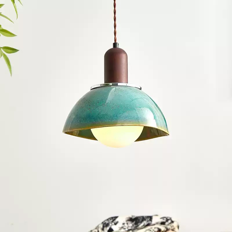 Ceramic Walnut Wood Art Bedroom Pendant Light